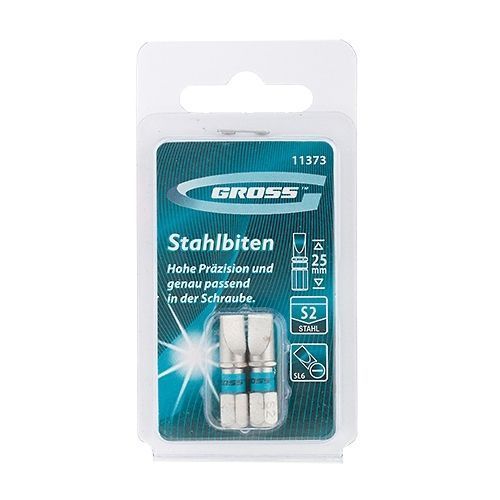 Набор бит SL6,0х25, сталь S2, 2шт //GROSS - набор от торговой марки GROSS, предназначенный для использования в качестве насадок в ручном и механическом инструменте. Подходит для использования с дрелями и шуруповертами.