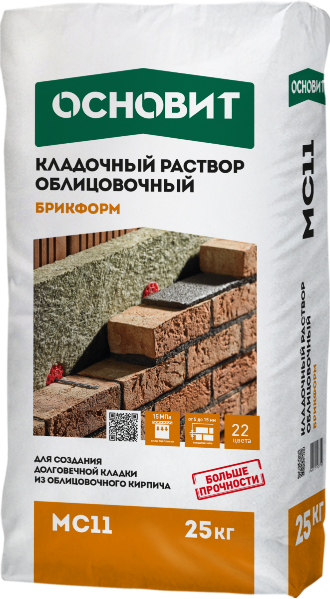 Кладочный раствор ОСНОВИТ БРИКФОРМ МС11 (Т-111) предназначен для кладки стен из любого облицовочного кирпича с возможностью расшивки швов в момент укладки. Рекомендуется при строительстве заборов, лестниц и сложных архитектурных конструкций. Для внутренних и наружных работ.