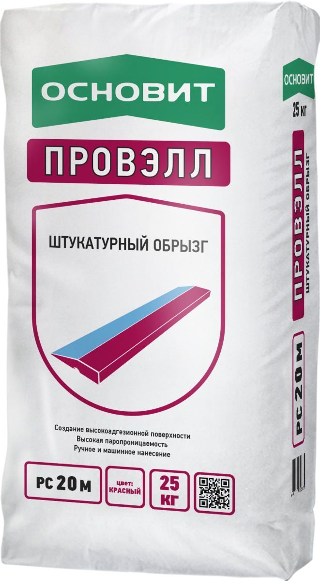 ОСНОВИТ Штукатурный обрызг ПРОВЭЛЛ PC20 M (старое название Т-20) (машинного и ручного нанесения) применяется для предварительной обработки оснований перед нанесением выравнивающих цементных штукатурок.