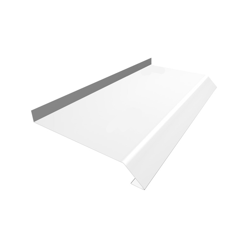 Имеет два загиба под углом 110° – пристенок и капельник. Окрашен в белый цвет RAL9003. На лицевую часть нанесена защитная пленка.