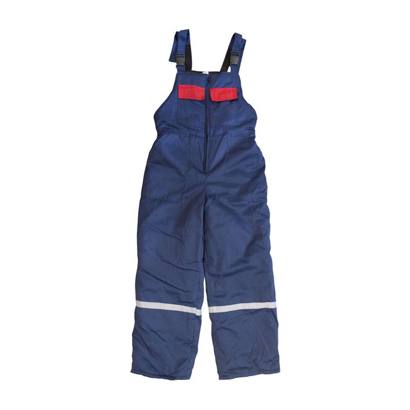 Полукомбинезон зимний из смесовой ткани (размер 56-58 / 182-188) используется в качестве защитной спецодежды при проведении промышленных работ в условиях пониженных температур. Изготовлен из смесовой ткани Балтекс . Выполнен в темно-синем цвете с клапаном на груди красного цвета. Оснащен 4 накладными карманами: три - спереди (два на поясе с косым входом, верхний накладной с клапаном на липучке) и один - сзади на поясе. В поясничной части вшита резинка.