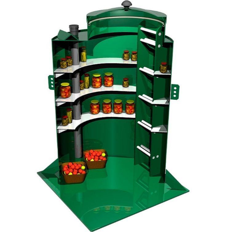 Alta Pogreb OR 2000 Пластиковый погреб-кессон - это подземный модуль для организации многофункционального, комфортного и безопасного подвального помещения для хранения продуктов с базовыми габаритами 1500 мм х 2400 мм (Диаметр х Высота). Alta Pogreb OR - это лучший кессон для погреба. В стандартную комплектацию входит: стандартная крышка без утепления три ряда пластиковых полок толщиной 20 мм самотечной вентиляцией (без вентилятора). Пластиковый погреб дополнительно оборудуется: полками принудительной вентиляцией освещением лестницами различного уровня комфорта дополнительной крышкой люка с пассивным утеплением. Преимущества Alta Pogreb OR 2000: надежный и герметичный. Не нужно красить и грунтовать - пластиковый модуль не подвержен коррозии, срок службы погреба не менее 50 лет. 100% герметичность! Не пропускает грунтовую воду. Не нужна дополнительная гидроизоляция с водонапорной стороны, как для железобетонных конструкций. Экологичный и удобный: безвреден для продуктов и здоровья человека. Может быть оснащен эргономичной лестницей, закладными элементами для установки полок, освещением системой вентиляции, удобной горловиной и надежной системой интеграции в железобетонный фундамент. Легкий, но прочный: пластиковый Alta Pogreb легкий и технологичный, для монтажа требуется минимум строительной техники. Пластиковый Alta Pogreb при соблюдении рекомендаций по монтажу не уступает в прочности погребам из других материалов (металл, железобетон).