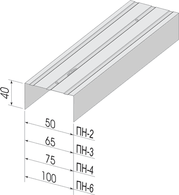 Профиль Н-4 75х40мм (3м) служит в качестве направляющей к стоечному профилю и также для устройства перемычек между стоечными профилями в каркасах перегородок и облицовок из ГКЛ.