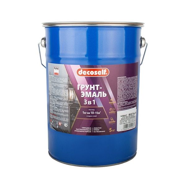 Грунт-эмаль 3 в 1 Pufas красно-коричневая (мат.) Decoself (5кг) предназначена для защиты и окраски как чистых, так и ржавых или частично прокорродировавших металлических поверхностей с толщиной плотнодержащейся ржавчины до 0,1 мм. Применяется для окраски решеток, оград, гаражей, металлических конструкций, эксплуатирующихся в атмосферных условиях, окраска ржавых поверхностей автомобилей.