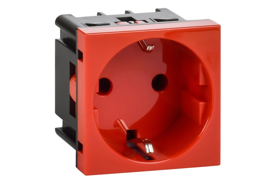 Розетка с заземляющим контактом защитной шторкой и винтовым зажимом IEK (Legrand) (2 модуля) красная предназначена для присоединения однофазных электрических потребителей к сети переменного тока напряжением 250В~ и частотой 50/60 Гц. Розетка поставляется с лицевой панель и устанавливаются в кабель-каналы DLP и Metra посредством соответствующих суппорт-рамок и в систему организации рабочих мест (лючки и колонны). Цвет: красный.
