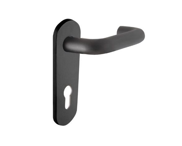 Дверная ручка на планке FUARO DH-0433/2 предназначена для установки на внешнюю сторону двери и рекомендуется к установке совместно с ручками-штангами моделей фиксации 1300A/1700A. Служит для установки на противопожарные/технические двери толщиной 40-70 мм , подходят для комплектации всех противопожарных замков с межосевым расстоянием 72 мм. Рекомендуется использовать в комплекте с противопожарными замками FUARO FL-0433 ANTI-PANIC. Пружина препятствует провисанию ручки, облегчает работу привода замка. Материал ручки: нескользящий огнеупорный нейлон, материал основания: оцинкованная сталь. Цвет: черный.