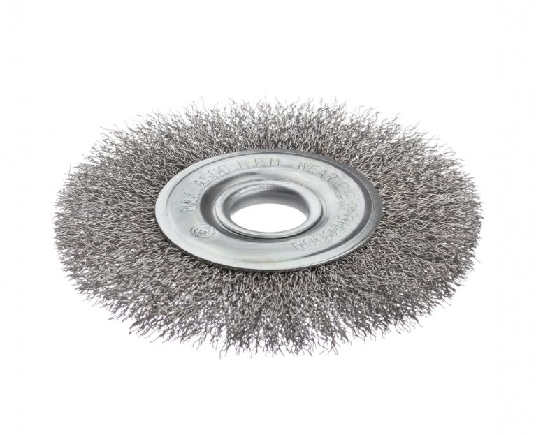 Щетка цилиндрическая, (кордовая) по нержавейке № 499 - щетка для УШМ дисковая гофрированная ТМ ПрофОснастка № 499, с внешним диаметром 125 мм и посадочным отверстием 22,23 мм. В основе кордщетки проволока из нержавеющей стали диаметром 0,3 мм. Ширина ворса 13 мм. Максимально допустимая скорость 12000 RPM. Цилиндрические щетки предназначены для обработки прутков, труб, профилей, кромок, пазов и других поверхностей, которые обеспечивают следующие типы обработки: удаление заусенцев, скругление кромок, матирование, удаление коррозии, очистка и полировка, удаление шлака. Инструмент рекомендован для использования по нержавеющей стали.