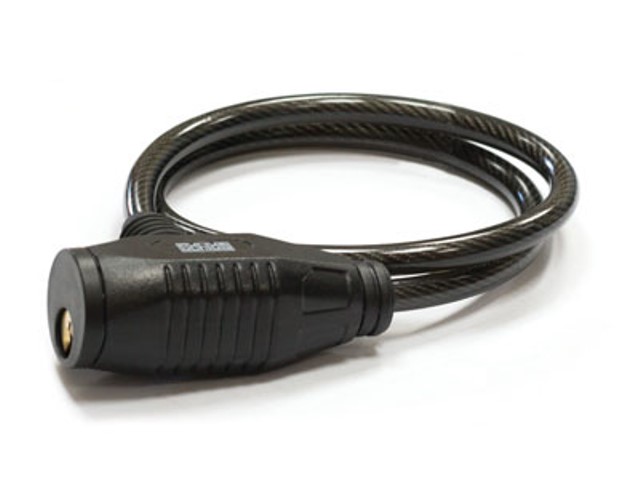 ШЛОСС 79011 Замок тросовый 8x650мм (30/120) отличается прочный стальным троссом. Пластиковый защитный кожух. Латунный цилиндровый механизм. Индивидуальная упаковка - картонный подвес. В комплекте 3 латунных ключа.