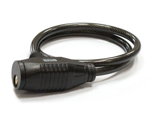 ШЛОСС 79012 Замок тросовый 8x800мм (30/120) отличается прочный стальным троссом. Пластиковый защитный кожух. Латунный цилиндровый механизм. Индивидуальная упаковка - картонный подвес. В комплекте 3 латунных ключа.