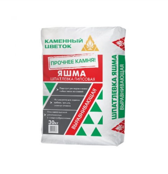 Базовая гипсовая шпатлевка ЯШМА цвет белый (30 кг) изготовлена на основе гипса, минеральных наполнителей и модифицирующих добавок. Шпаклёвка предназначена для выравнивания стен и потолков внутри помещения с нормальным уровнем влажности. Рекомендуется для заделки стыков гипсокартона ГКЛ и гипсоволокнистых листов ГВЛ с использованием армирующей ленты, для ремонта не глубоких сколов, выбоин, трещин и прочих повреждений. Применяется для ручного и механизированного нанесения. Для внутренних работ. Рекомендуемые основания: Бетонные основания, ячеистые блоки, цементные и гипсовые штукатурки, ГКЛ, ГВЛ, ЦСП, СМЛ и любые другие гипсовые и цементные основания.