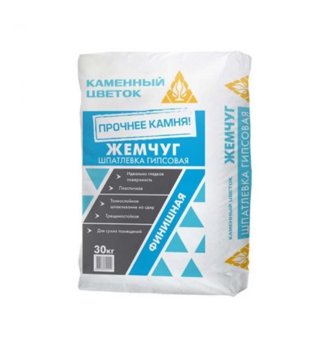 Финишная гипсовая шпатлевкаЖЕМЧУГ цвет белый (30 кг) - смесь сухая строительная шпатлевочная на гипсовом вяжущем предназначена для финишного выравнивания стен и потолков, для заделки швов ГКЛ и ГВЛ. Рекомендуется под последующее нанесение декоративных покрытий. Для внутренних работ.