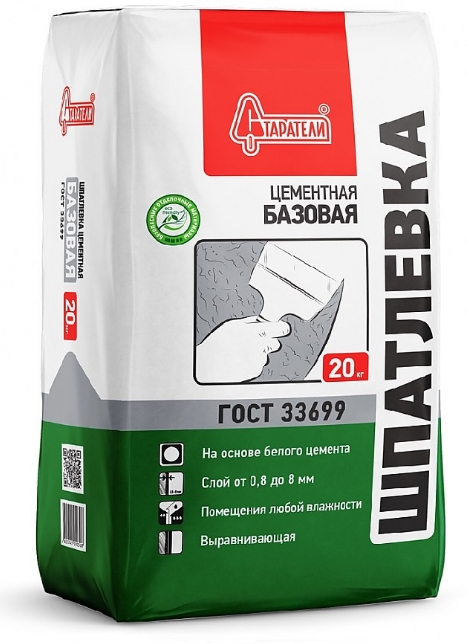ГОСТ 33699 Шпатлевка цементная Старатели Базовая для выравнивания стен и потолков внутри помещений с нормальным и повышенным уровнем влажности (в том числе неотапливаемых). Рекомендуется для ванных комнат, дверных и оконных откосов, «теплых» балконов и террас.