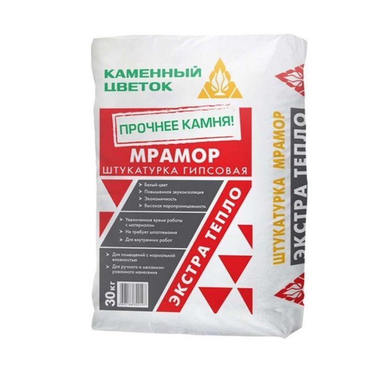 Гипсовая штукатурка МРАМОР белая для отделки сухих внутренних помещений. Для высококачественного оштукатуривания стен и потолков по пенобетонным, газосиликатных и прочим пористым основаниям подготовка основания под покраску, оклейку обоями также возможно применять на типичных минеральных основаниях. На гипсовой основе. Для работ в помещениях с нормальной влажностью. Однослойное сплошное нанесение до 20 мм за 1 раз. Локальное выравнивание до 50 см. Стойкость к трещинообразованию. Повышенные тепло и звукоизоляционные свойства. Создается комфортный режим влажности в обработанном помещении. Эластичен при нанесении.