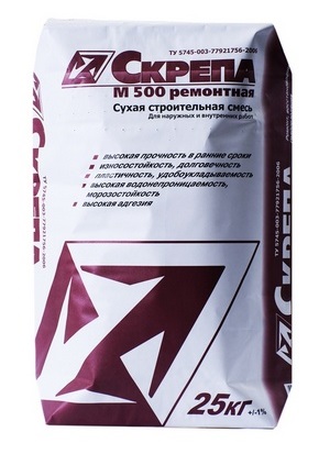 Скрепа М500 ремонтная - сухая тиксотропная смесь, состоящая из портландцемента, кварцевого песка определенной гранулометрии и уникальных химических добавок и армирующего фиброволокна.