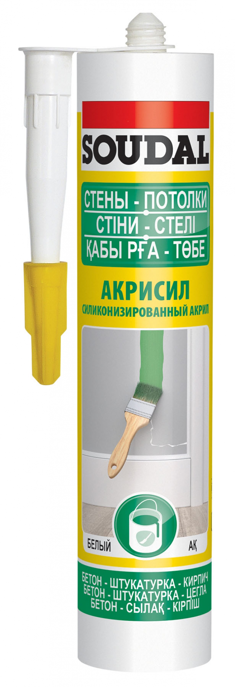 Акриловый герметик Soudal АКРИСИЛ для санитарных помещений: кухонь, ванных комнат и санузлов.
