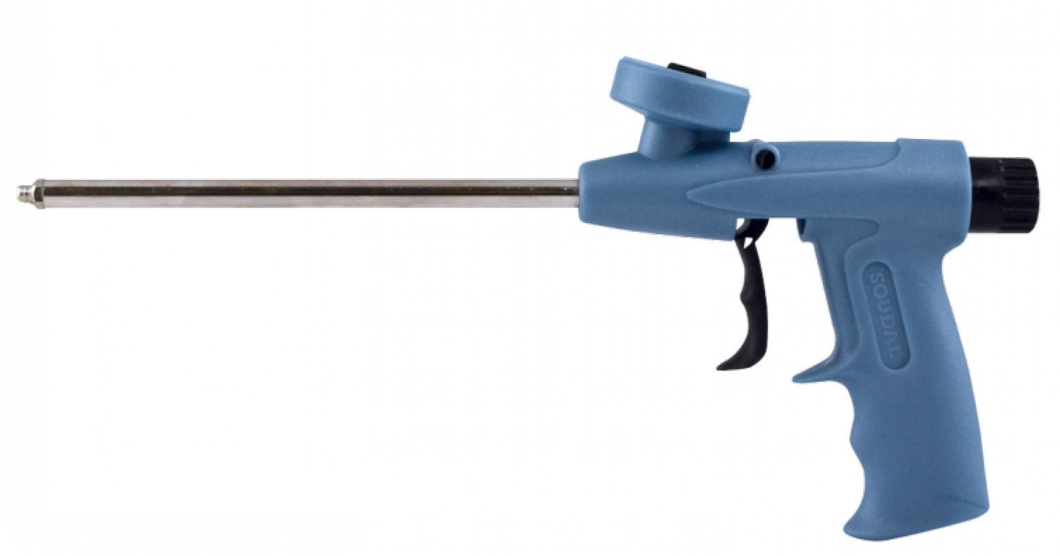 Пистолеты для монтажной пены Soudal предназначены для равномерного нанесения герметика в изоляционные зазоры, для фиксации ванн и раковин, для предотвращения сквозняков при эксплуатации оконных и дверных комплектов, для герметизации кровли и мелкого бытового ремонта. Этот инструмент сконструирован для баллонов с резьбовым соединением. Время безаварийной работы пистолета увеличено за счет встроенного сменного гнезда и возможности регулировать носик.