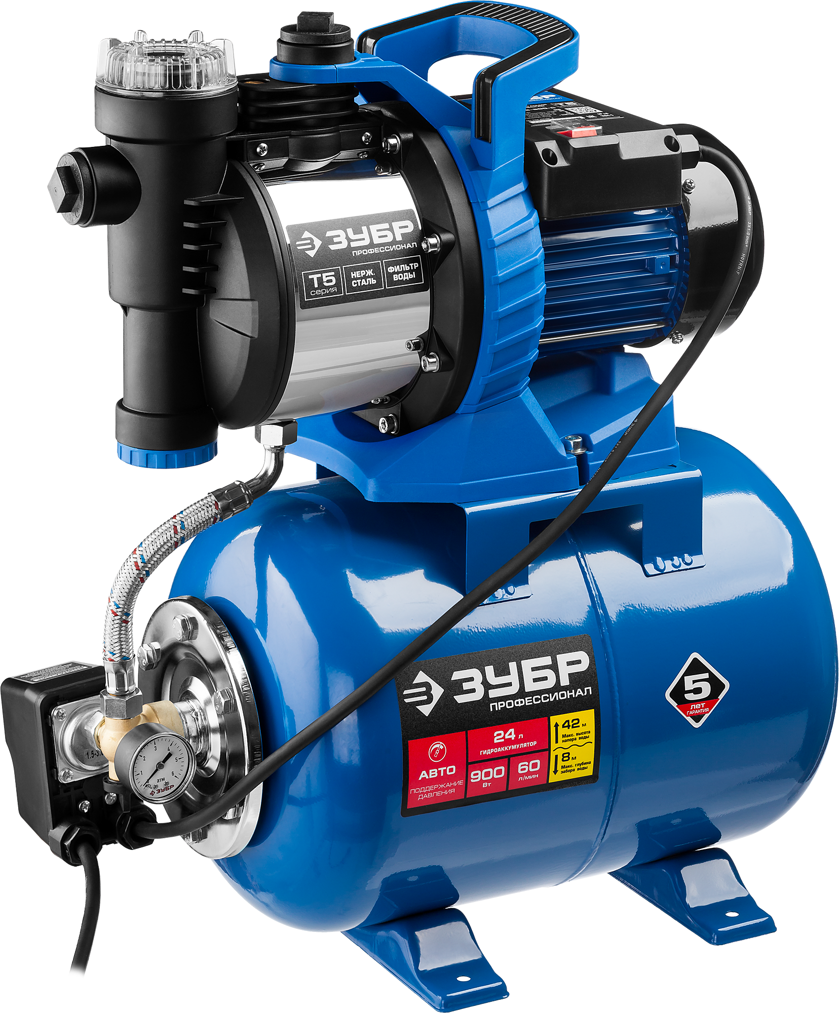 Насосная станция ЗУБР ПРОФЕССИОНАЛ НАС-Т5-900-С служит для водоснабжения дома и сада.