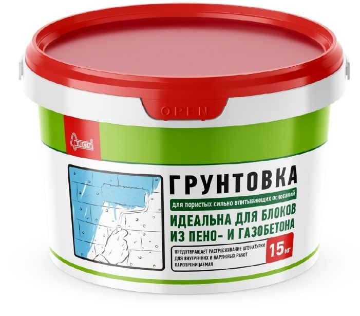 Грунтовка Старатели Для пористых сильно впитывающих оснований - для предварительной обработки оснований из ячеистого бетона (пенобетонных, газобетонных, газосиликатных) перед последующим нанесением гипсовых штукатурок гипсовых, цементных и полимерных шпатлевок плиточных клеев. Не применяется перед выравниванием цементными штукатурками. Грунтование производится строго в один слой.