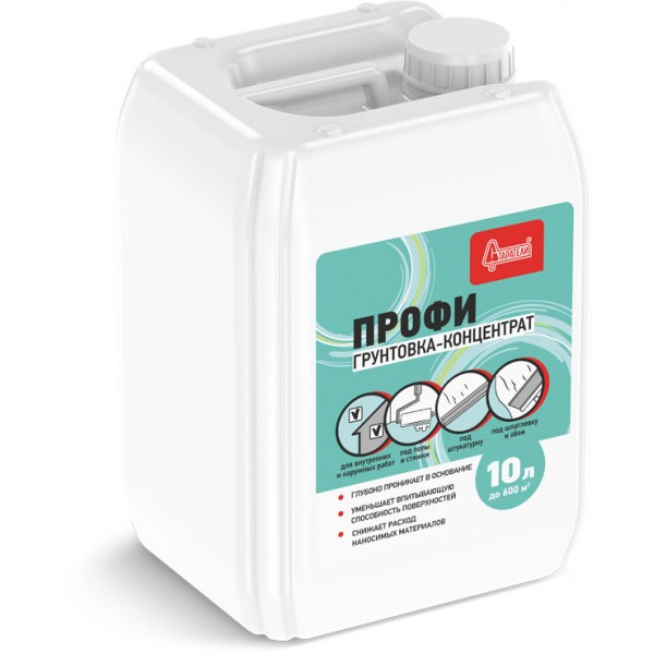 Грунтовка-концентрат глубокого проникновения Старатели «Профи» - концентрированный состав, предназначенный для профессионального применения. Разбавляется водой в соотношении от 1:1 до 1:5 в зависимости от впитывающей способности поверхности и типа проводимых отделочных работ. Предназначена для укрепления старых, рыхлых, отмеливающих оснований, обеспечивает равномерное схватывание раствора гипсовых и цементных смесей, увеличивает прочность сцепления наносимых материалов с основанием. Подходит для наружных и внутренних работ.
