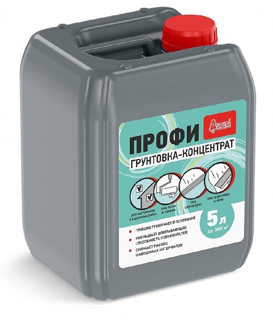 Грунтовка-концентрат глубокого проникновения Старатели «Профи» - концентрированный состав, предназначенный для профессионального применения. Разбавляется водой в соотношении от 1:1 до 1:5 в зависимости от впитывающей способности поверхности и типа проводимых отделочных работ. Предназначена для укрепления старых, рыхлых, отмеливающих оснований, обеспечивает равномерное схватывание раствора гипсовых и цементных смесей, увеличивает прочность сцепления наносимых материалов с основанием. Подходит для наружных и внутренних работ.