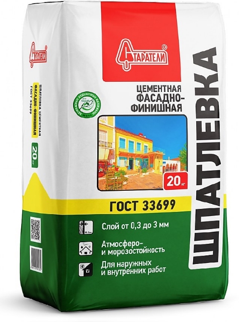 ГОСТ 33699 Шпатлевка цементная Старатели Фасадно-финишная - для высококачественного финишного выравнивания фасадов, а также стен и потолков как снаружи, так и внутри помещений, особенно влажных и неотапливаемых.