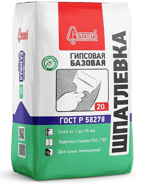 ГОСТ Р 58278 Старатели Шпатлевка гипсовая Базовая - для выравнивания стен и потолков внутри помещений с нормальным уровнем влажности. Рекомендуется для заделки стыков ГКЛ, ГВЛ с использованием армирующей ленты и головок саморезов на поверхности ГКЛ, ремонта неглубоких сколов, выбоин, трещин, царапин и прочих повреждений создания декоративных фактурных поверхностей. В качестве основания могут выступать бетон, ячеистый бетон (пено- и газобетон), кирпич, гипсовая и цементная штукатурка, ПГП, ГКЛ, ГВЛ. Применяется для ручного и механизированного нанесения. Не предназначена для прямого контакта с питьевой водой и пищевыми продуктами.