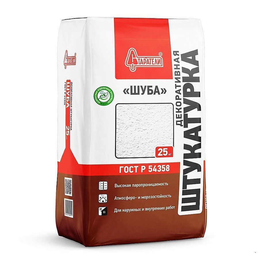 ГОСТ 54358 Штукатурка декоративная Старатели Шуба - для нанесения на ровные недеформирующиеся основания с целью получения тонкослойного декоративно-защитного покрытия с шероховатой зернистой фактурой под последующую окраску. Используется в помещениях с нормальной и повышенной влажностью (в том числе неотапливаемых), а также для наружных работ. Рекомендована для систем фасадных теплоизоляционных композиционных (СФТК) с наружными штукатурными слоями.