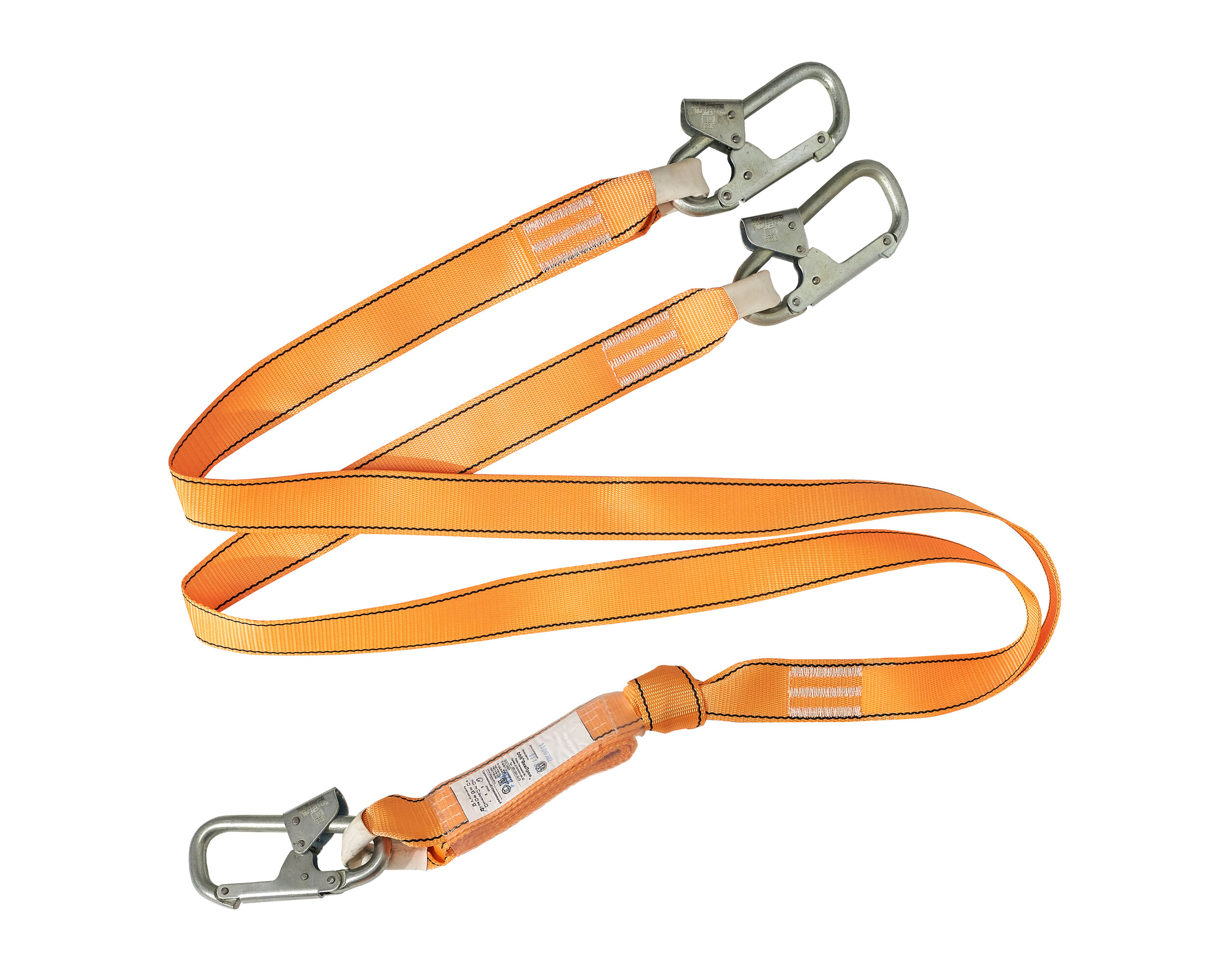 Строп аАд + К25 (лента) - строп для удержания и страховки при выполнении высотных работ. Представляет собой двуплечий фал из полиэфирной ленты с амортизатором рывка и 3-мя малыми монтажными карабинами класса Т.