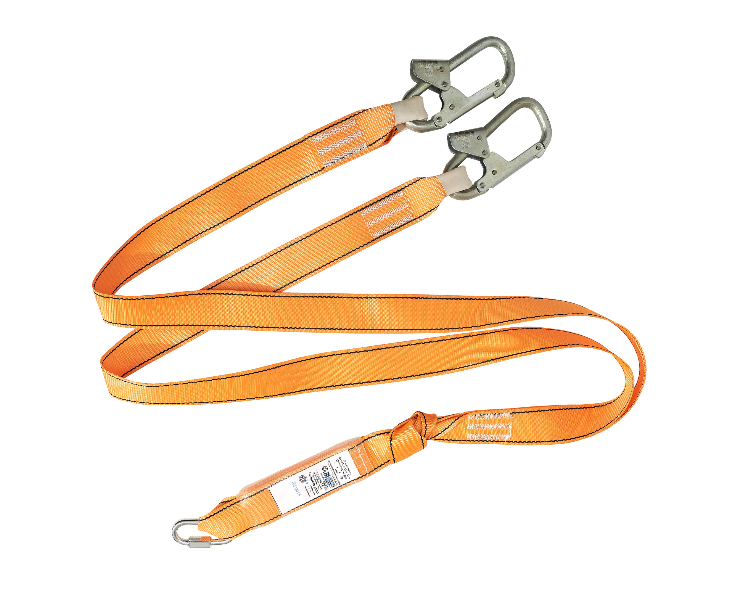 Строп аАд + Кс (лента) - строп для удержания и страховки при выполнении высотных работ. Представляет собой двуплечий фал из полиэфирной ленты с амортизатором рывка, 2-мя малыми монтажными карабинами класса Т и соединительным винтовым карабином класса Q.