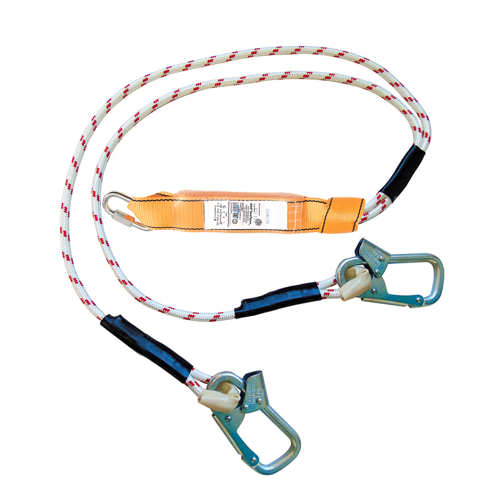 Строп аВд + Кс (верёвка) - строп для удержания и страховки при выполнении высотных работ. Представляет собой двуплечий фал из 24-х прядной полиамидной верёвки с амортизатором рывка, 2-мя малыми монтажными карабинами класса Т и соединительным винтовым карабином класса Q.