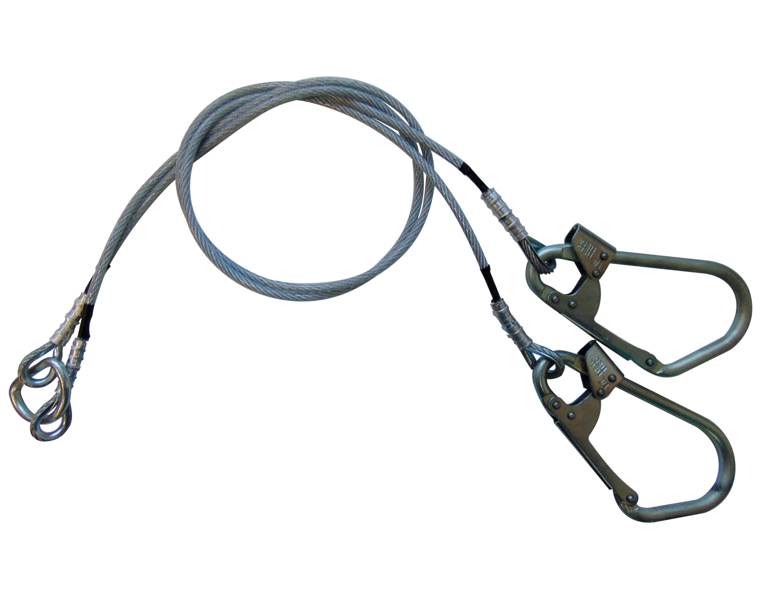 Строп Бд (трос, вар. 2) - двойной строп для позиционирования и удержания. Представляет собой двуплечий фал из стального троса в ПВХ-оплётке с 2-мя большими монтажными карабинами класса А и крепёжным D-кольцом.