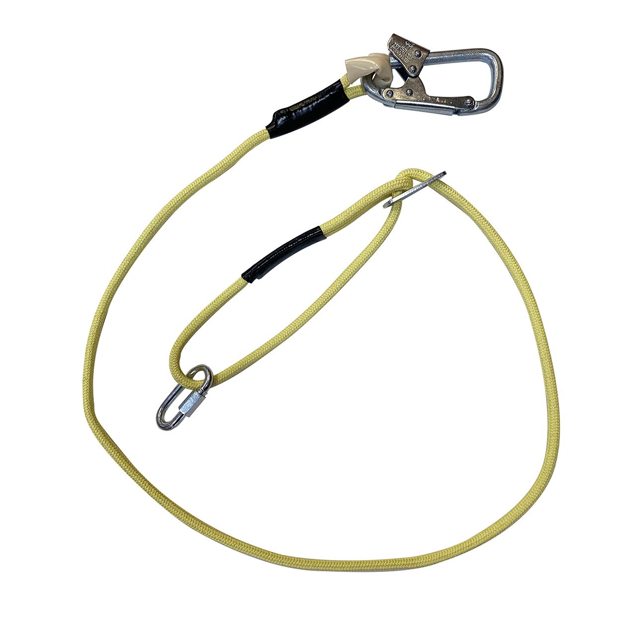 Строп Врег + Кс (Ог) - регулируемый огнеупорный строп для позиционирования и удержания. Представляет собой фал из 24-х прядной арамидной верёвки с малым монтажным карабином класса Т и соединительным винтовым карабином класса Q.