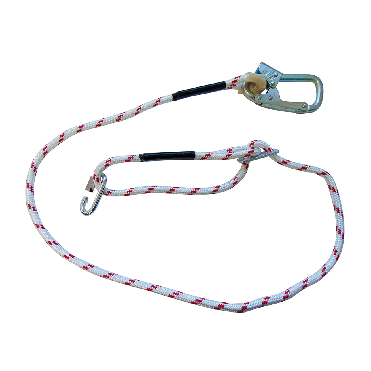 Строп Врег + Кс (верёвка) - регулируемый строп для позиционирования и удержания. Представляет собой фал из 24-х прядной полиамидной верёвки с малым монтажным карабином класса Т и соединительным винтовым карабином класса Q.