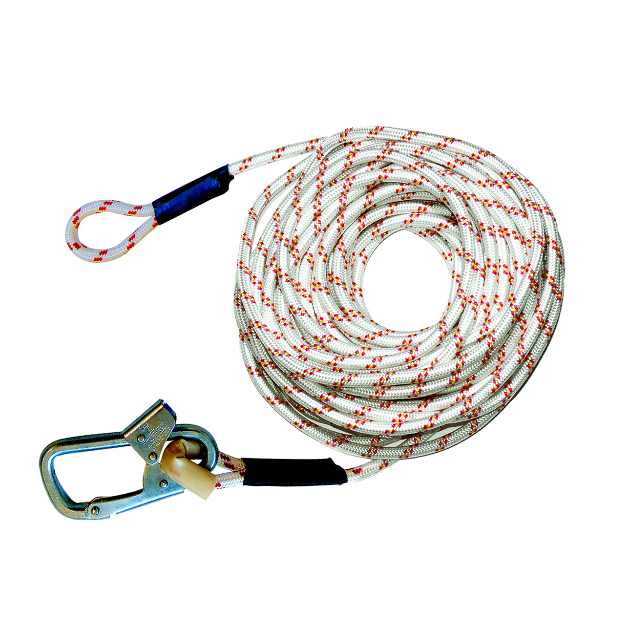 Строп В – 5 м (верёвка спасательный) - строп для спуска и подъёма из замкнутых пространств (канализационные люки, траншеи и т.д.). Используется для спасательных работ и экстренной эвакуации из замкнутых пространств. Представляет собой фал из 24-х прядной полиамидной верёвки с малым монтажным карабинам класса Т и крепёжной петлёй.
