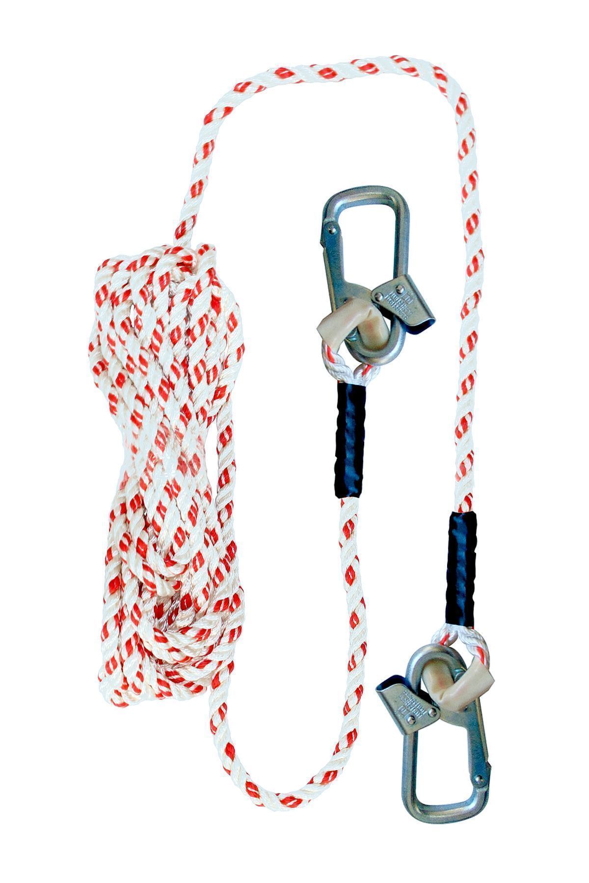 Строп В + К25 – 10 м (канат спасательный) - строп для спуска и подъёма из замкнутых пространств (канализационные люки, траншеи и т.д.). Используется для спасательных работ и экстренной эвакуации из замкнутых пространств. Представляет собой фал из 3-х прядного полиамидного каната с 2-мя малыми монтажными карабинам класса Т.