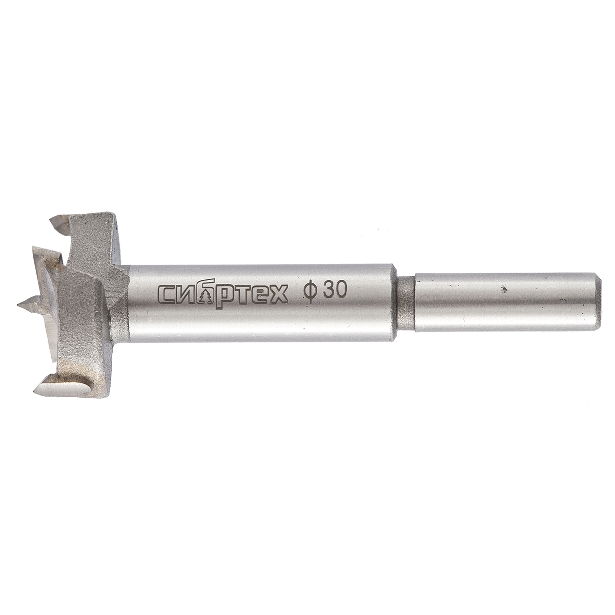 Сверло Форстнера по дереву, 30 мм, цилиндрический хвостовик // СИБРТЕХ изготовлено из углеродистой стали и оснащено твердосплавными пластинами для увеличения стойкости и производительности.