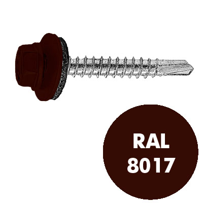 СВФС Саморез кровельный с цветом головки RAL-8017 ZP размером 4,8х51 (Упаковка 250шт) используется для крепления кровельных материалов к металлическим и деревянным каркасам. Имеет окрашенную шестигранную головку с шайбой и резиновой прокладкой EPDM, наконечник - сверло.