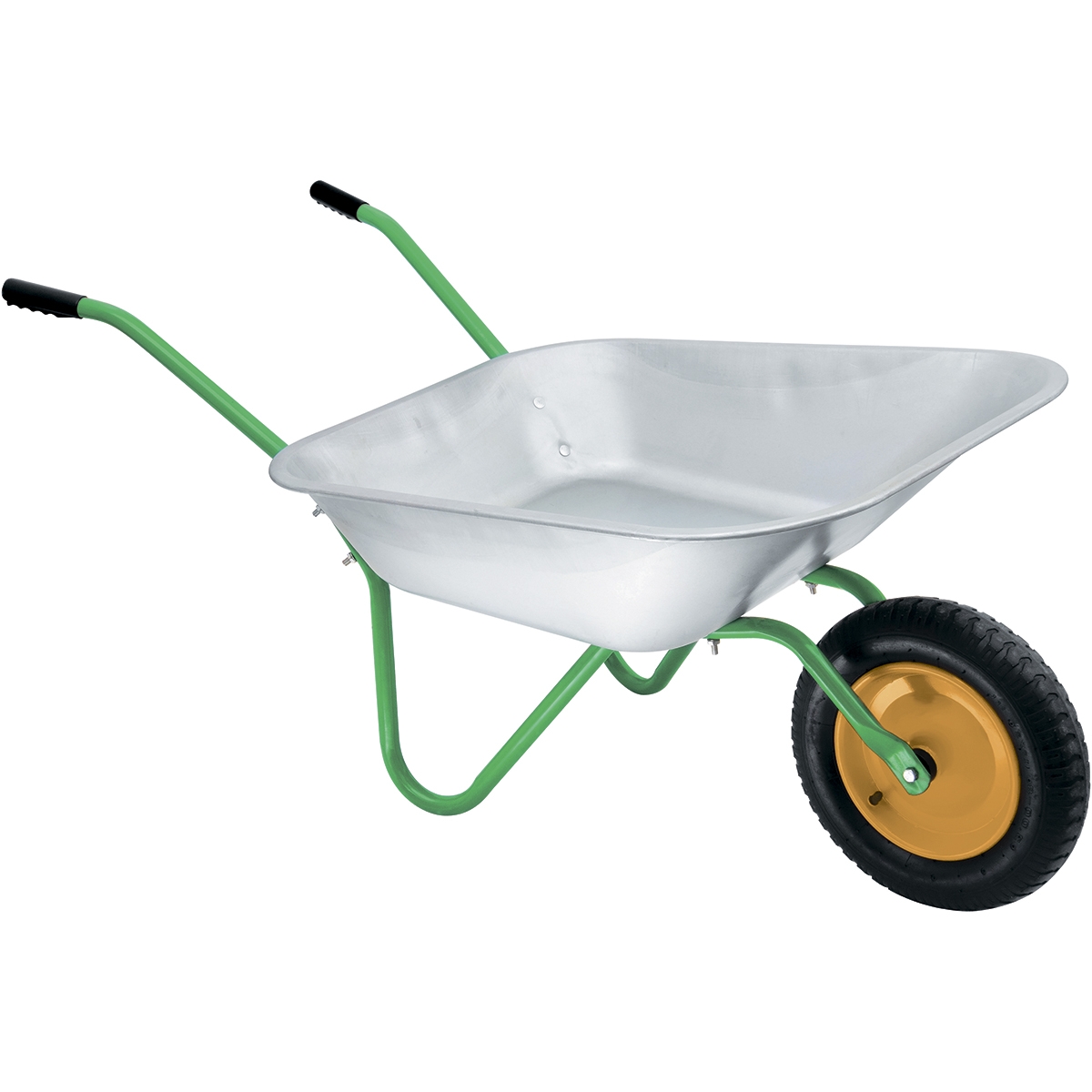 Упор обеспечивает удобство при разгрузке. Тачка комплектуется пневматическим колесом с камерой. Диск колеса сварной.