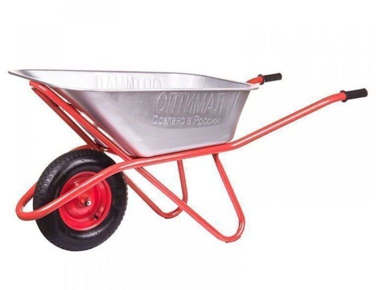 Тачка ОПТИМАЛ строит. одноколес., NYLON колесо (Россия) - тачка строительная одноколесная с оцинкованной емкостью 110 литров. Тачка предназначена для тяжелых работ на строительной площадке и в саду.