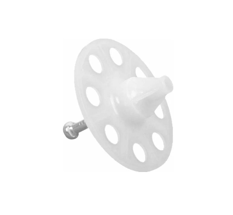 Дюбель-гриб тарельчатый с гвоздем для монтажных пистолетов используется для крепления теплоизоляционных материалов к потолку, наружным и внутренним поверхностям зданий и сооружений. Состоит из пластикового дюбеля и стального дюбель-гвоздя в сборе. Дюбели крепятся с помощью специальных монтажных пистолетов.