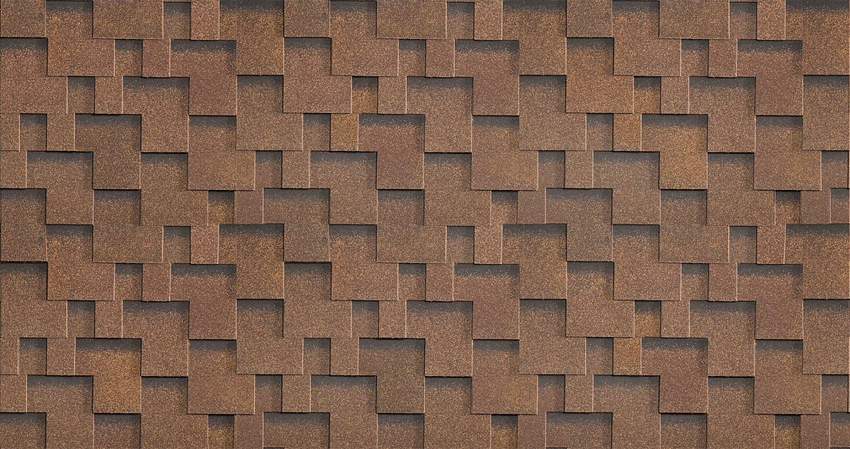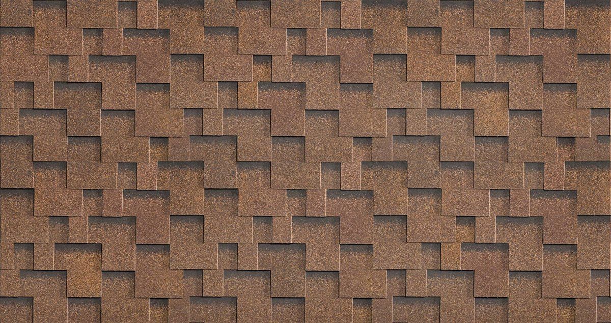 Эффектная рельефная кровля с интересной формой и своеобразными цветовыми переходами. Сдержанные оттенки в тёплой натуральной гамме составят достойный ансамбль с любой кровлей.