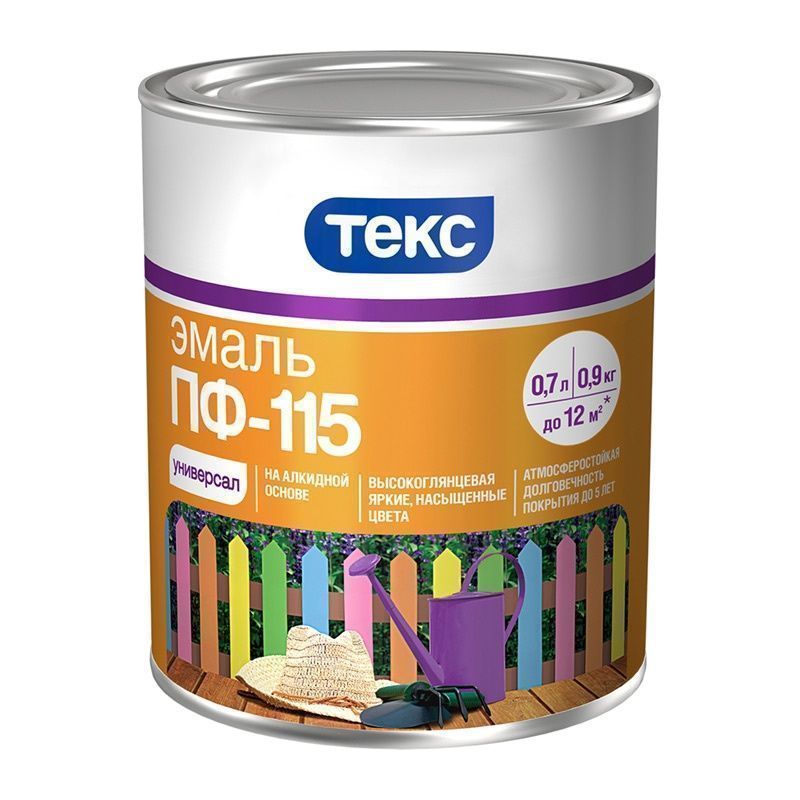 Эмаль Текс ПФ-115 класс Универсал глянцевая - долговечная эмаль, предназначенная для внутренних и наружных работ: для окраски деревянных домов, оконных рам, дверей, ДСП, металлических и оштукатуренных поверхностей. Не применять для окраски полов.