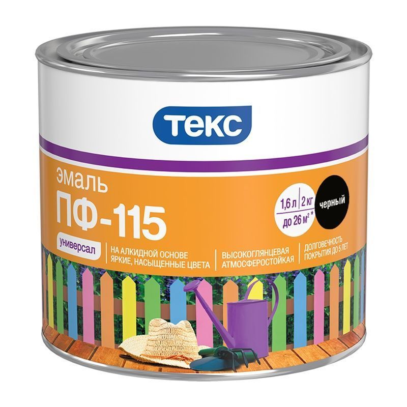 Эмаль Текс ПФ-115 класс Универсал глянцевая - долговечная эмаль, предназначенная для внутренних и наружных работ: для окраски деревянных домов, оконных рам, дверей, ДСП, металлических и оштукатуренных поверхностей. Не применять для окраски полов.
