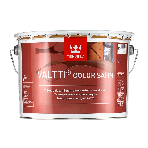 Тиккурила Валтти Колор - лессирующий антисептик на основе таллового и льняного масел, придающий деревянной поверхности сатиновый блеск после нанесения 1-2 тонких слоев.