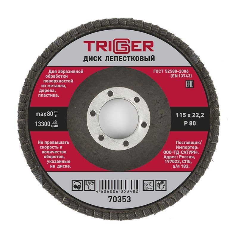 ТРИГГЕР 70353 Диск лепестковый по металлу 115х22мм P80 (10/100)