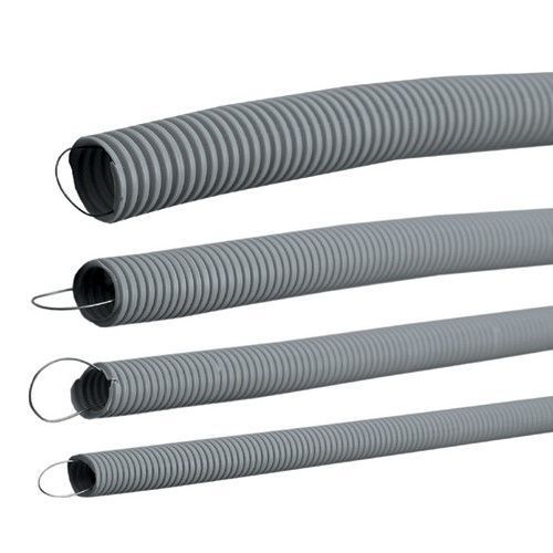 Труба выполнена из самозатухающего ПВХ серого цвета, что исключает возникновение пожаров при коротком замыкании. Материал, из которого сделаны трубы, является отличным диэлектриком.