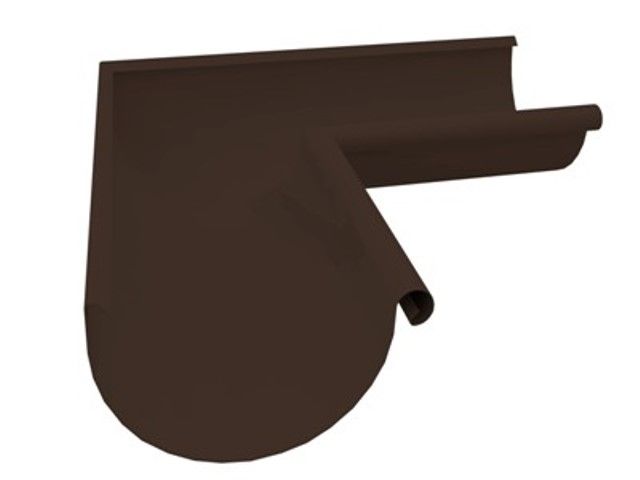 Угол желоба внутренний металл D125мм коричневый используется для изменения направления потока воды, монтируются на внешних и внутренних углах кровли. Выполнены бесшовным способом (глубокой вытяжкой металла), что обеспечивает жесткость, эстетичность, герметичность и отличную гидродинамику.