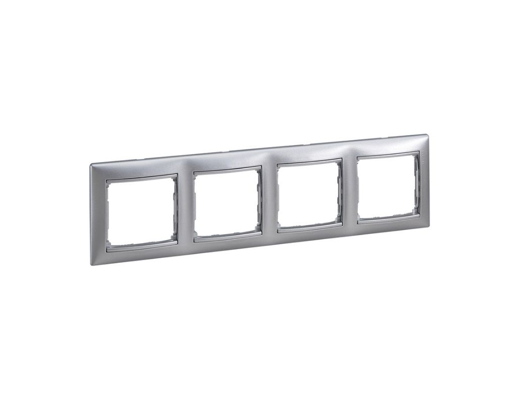 VALENA Рамка IEK (Legrand) 4 поста горизонтальная алюминий (770154) предназначена для установки на механизмы серии VALENA.