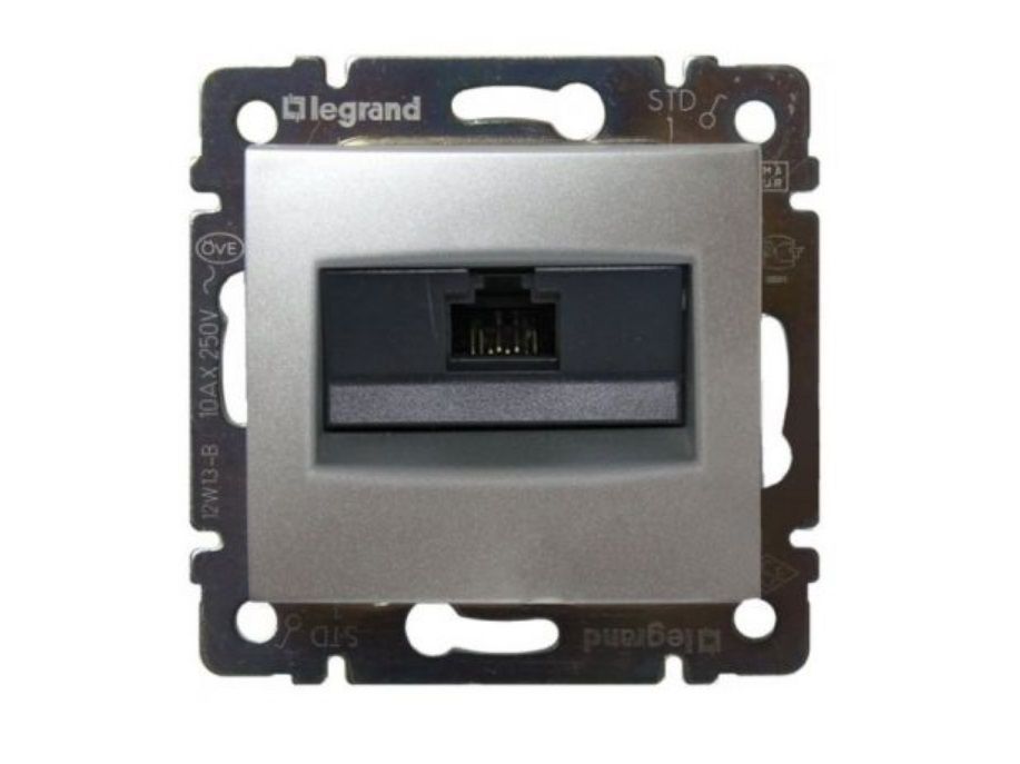 VALENA Розетка IEK (Legrand) компьютерная RJ45х1 UTP алюминий (770230) скрытого монтажа. Предназначена для быстрого подключения персональных компьютеров к информационным сетям категории 5e.
