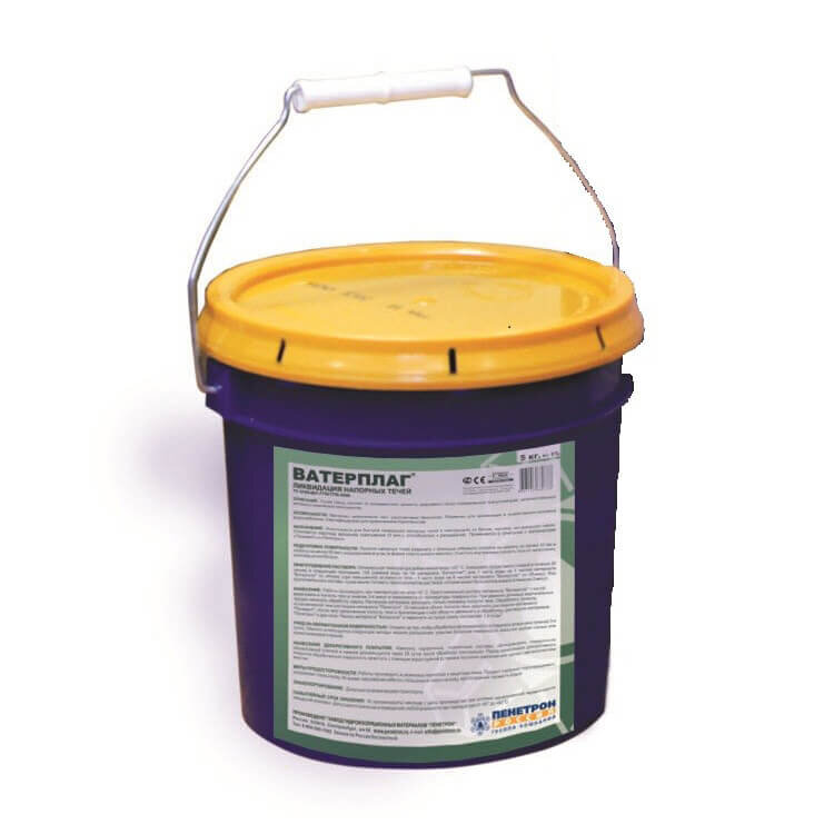 Гидроизоляционная смесь Ватерплаг (10кг) применяется для оперативной ликвидации напорных течей в конструкциях, выполненных из бетона, кирпича и натурального камня. Применяется, когда Пенетрон и Пенекрит вымываются водой. Используется для гидроизоляции бассейнов, стен подвалов, колодцев. Позволяет изолировать напорную течь для дальнейшей обработки бетона материалами Пенекрит или Пенетрон. Для остановки течи средство вдавливается в предварительно расширенную полость.